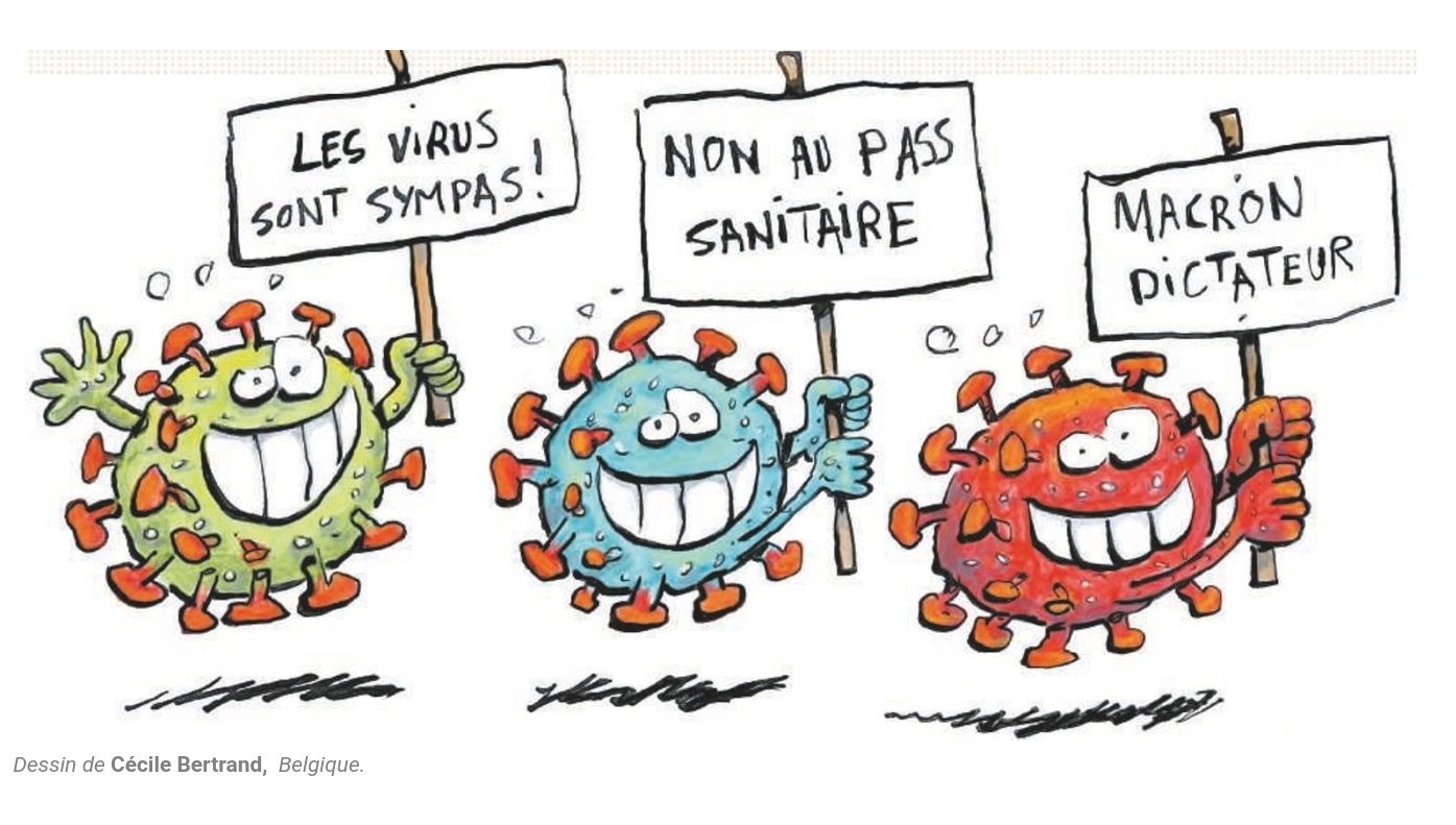 D’abord ce dessin de presse venu du nord à propos de l’ambiance entre virus, vaccin et obligation… Sans s’étaler sur le sujet, disons que le débat est jalonné par plusieurs éléments…