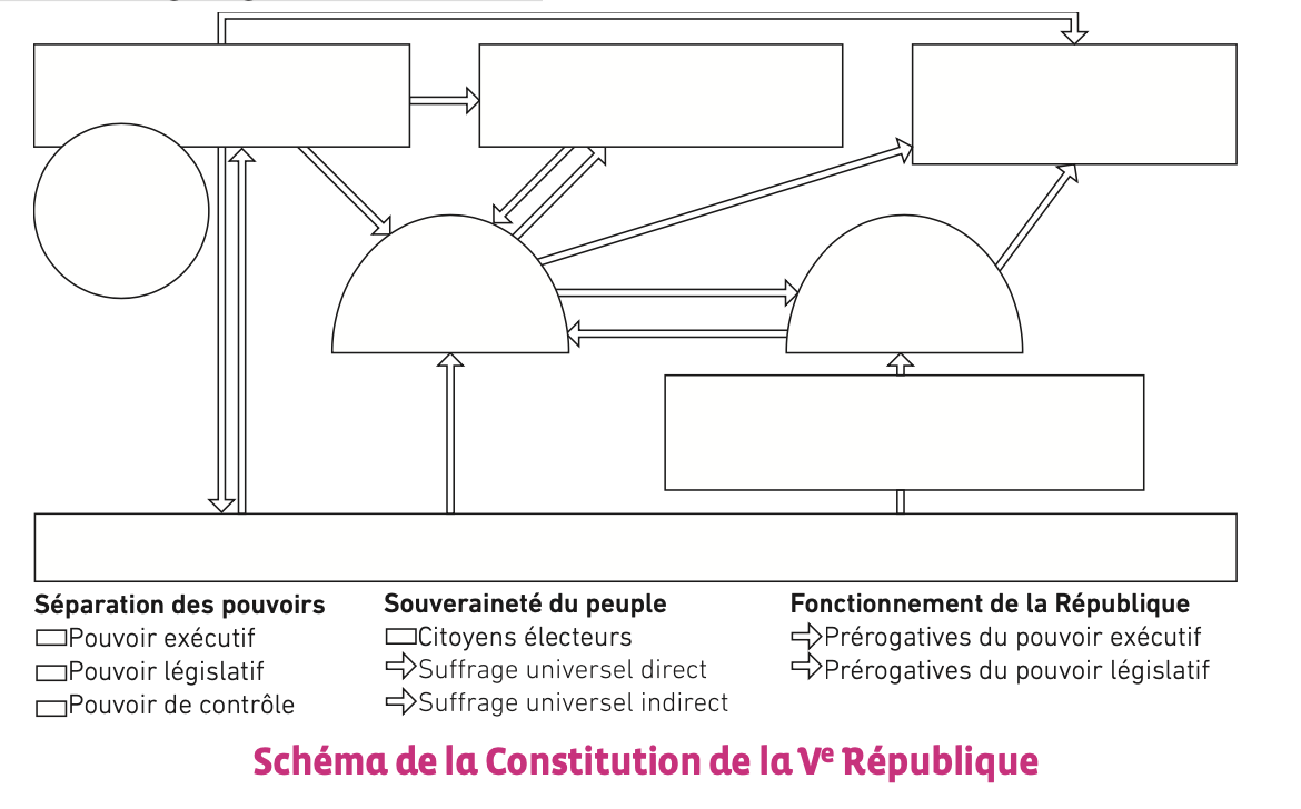 <<Jeudi 29 janvier 2026 – Depuis 1789 la France a connu 15 constitutions. En 1958, le général de Gaulle a fondé la Ve République. Le président de la République a certains pouvoirs : il nomme le Premier Ministre, il est le chef des Armées et en cas de crise grave il peut exercer tous les pouvoirs avec l’article 16. Il est élu pour 5 ans et les prochaines élections présidentielles auront lieu en 2027, un peu avant les élections législatives.>> fond constitution Ve